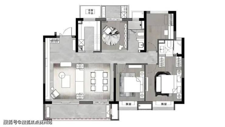 厨房采用开放式设计,餐厨一体,不仅提升了空间利用率,更增进了家人之间的互动与交流。主卧室小家化设计,集独立卫浴、步入式衣帽间、南向景观飘窗于一体,尊贵与舒适并存。南北次卧全明设计,灵活多变,满足不同家庭成员的需求。