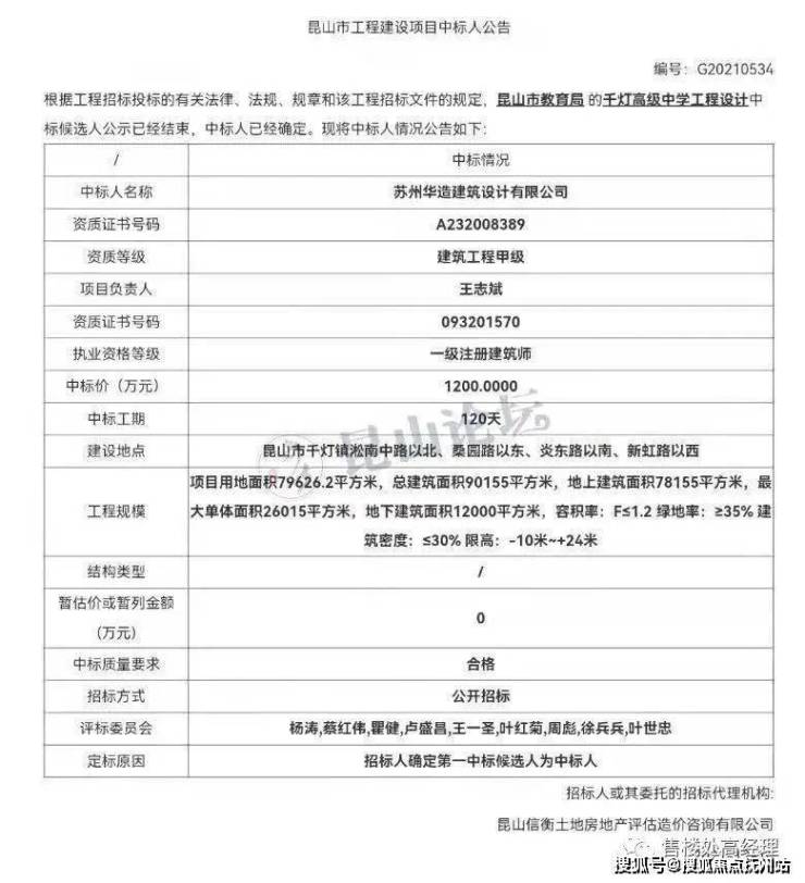 亭林高中规划图及招标公告,信息来源:昆山市人民政府官网