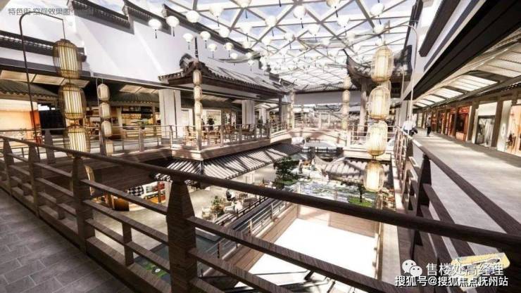 而写字楼旁边的商场,除了电影院、健身房、生鲜超市、品牌入驻等常规配置之外,第七、第八层别出匠心的设计了一个具有千灯古镇特色风格的打卡点——特色街。