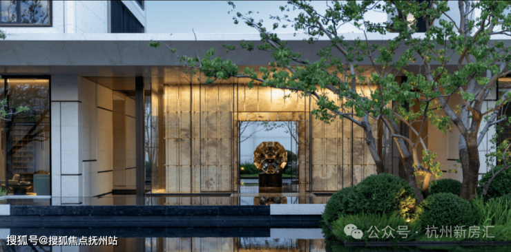 建筑立面上,源自罗伯特・斯特恩古典风格的现代转译,融入蒙迪里安格构手法,以质感石材、鎏金铝板与大面积玻璃的精妙组合,搭配独墅感框景序列,既彰显古典的厚重与尊崇,又兼具现代的简约与通透,成为城市天际线中一道独特的风景。