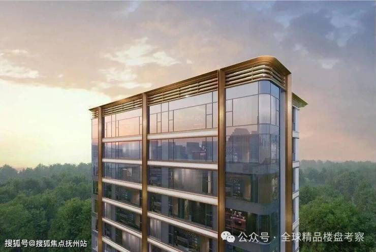 峯之镜 —— 双曲镜幕,超尺度曲面屏玻璃幕墙与流线型古铜色金属铝板交织,形成轻盈通透的悬浮视觉,让建筑仿佛生长于绿意之上,重塑城市天际线。270°曲面瀑布窗,转角采用的是无柱设计,转角窗连续长度能高达约5米,工艺复杂,也就代表着投入成本不低。