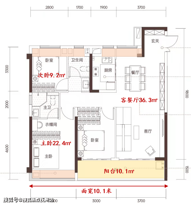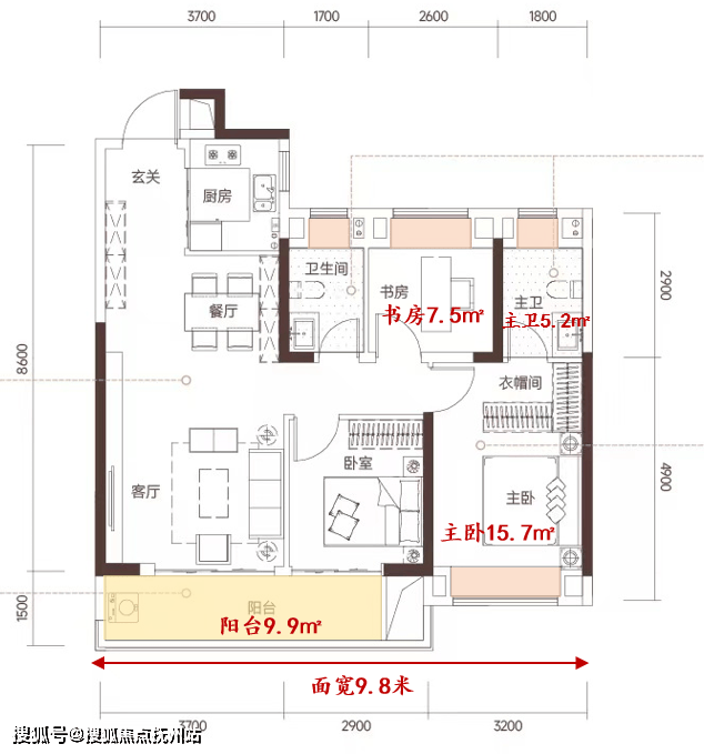 特点1:约9.8-10.1米的南向面宽,室内通风采光效果佳
