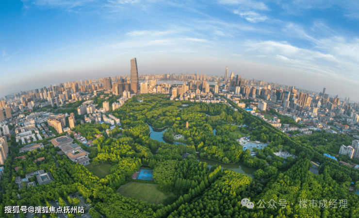 ▶园外,解放公园近在咫尺,7.6万方水系、46万方馥郁遥相呼应;