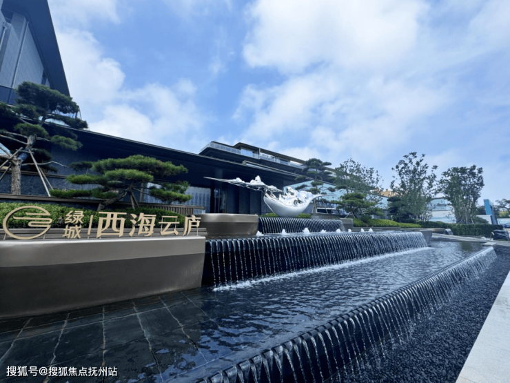 在台地式的山体“高”处,如何做到“平”和“宽”,相当考验建造者的水平。绿城·西海云庐在建筑形态上,采用了云庐系标志性的“现代形 东方意”的美学,大面积落地玻璃搭配金属铝板,辅以蓝眼睛石材干挂,呈现出通透轻盈的视觉效果。项目甄选被誉为“门窗界劳斯莱斯”的YKK系统窗,通过“横明竖隐”的幕墙体系突破传统窗框比限制,最大限度将山水光景引入室内。隐梁隐柱的设计则让建筑更显轻盈,完美诠释了东方美学中“留白”的艺术精髓,让房子仿佛轻盈地漂浮在山海之间。