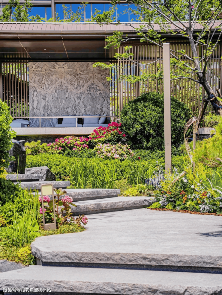 从社区入口开始,台地的高低落差便被精心编织成层层递进的归家礼序,恰似中国古典园林中“移步异景”的美学精神。每一步拾级而上,都是一次从尘世走向静谧的心灵归家之旅。前场景观广场,叠水迎宾、松石相迎,营造出庄重而富有仪式感的第一印象;山水中轴以“叠山、理水、游园、抱树”的东方造园技法,将原生山势与人工雕琢巧妙融合,蜿蜒水系串联林间步道,户外会客厅隐于绿荫,社区与自然的边界在此消弭于无形。走在其中,仿佛穿越一幅立体山水画卷,每一处转角都藏着不同维度的风景。
