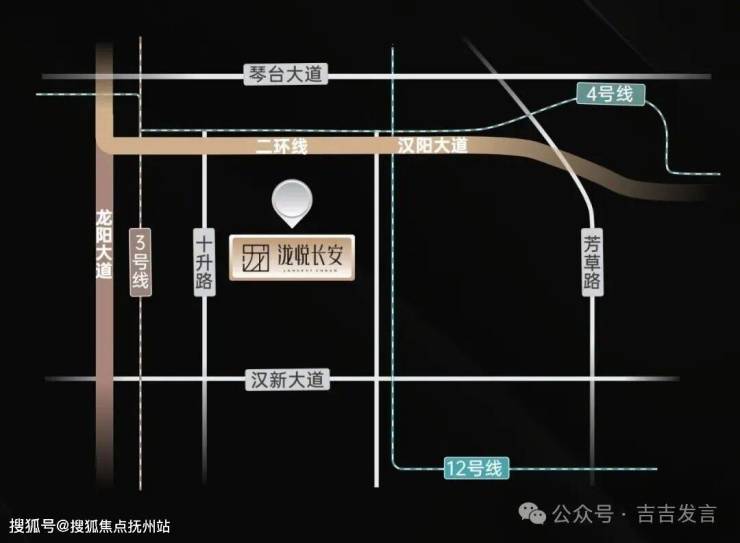 三轨:一公里内3号线(龙阳村站,直线距离约1km),4号线(十里铺站,直线距离约1km),12号线(丁家咀站,直线距离约300米,武汉唯一环线地铁,可联通三镇,施工中)