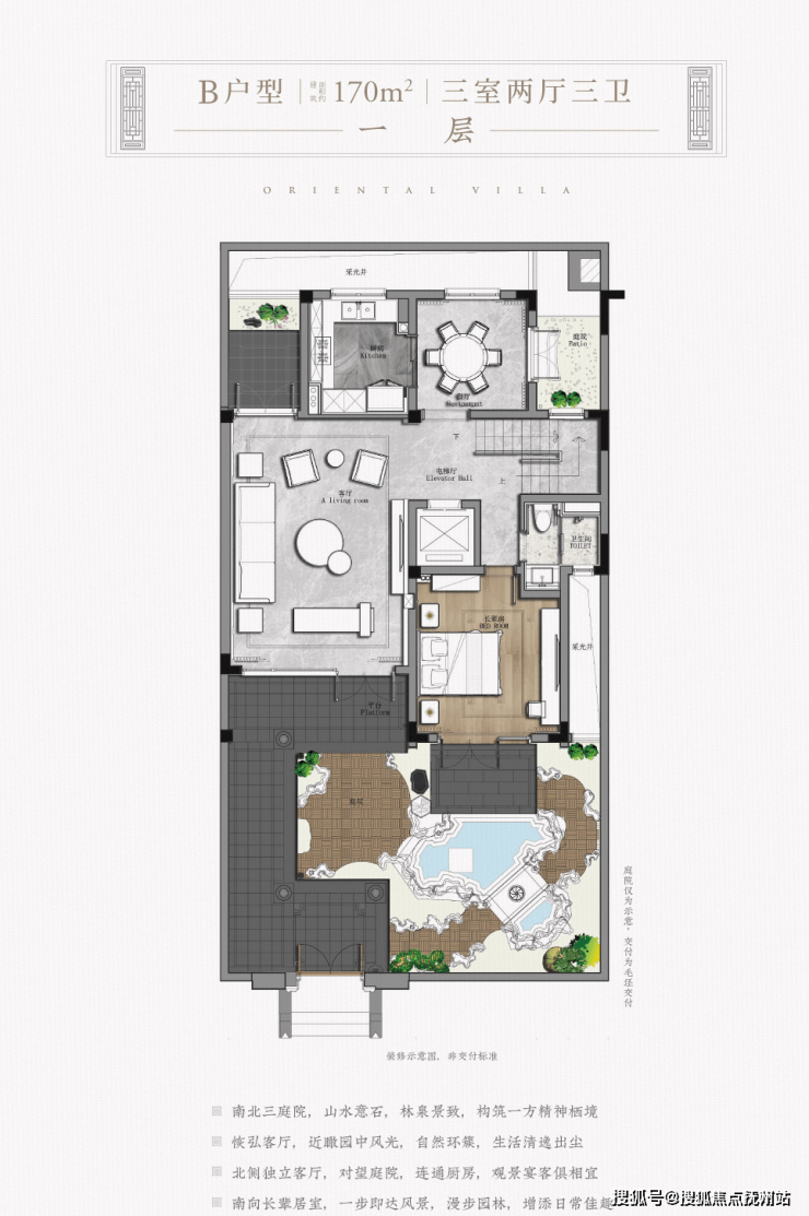 在华人的故事里,院子是物理空间,亦是精神空间。 春江御园的B户型,以约170㎡的多层空间,装下了天地风月和诗意人间。 约3.6米优越层高搭配超大窗墙比,将南北庭院酝酿的诗雅情境装进视界,呼应当代生活品味与格调。
