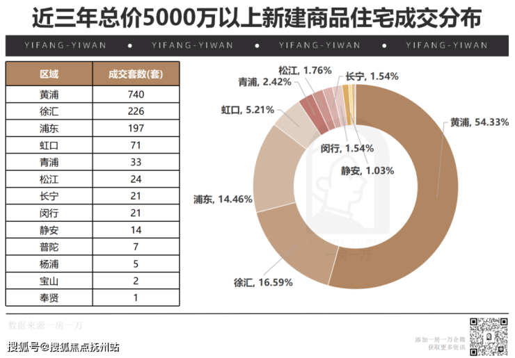 我们从后台拉取了近三年上海新建商品住宅的成交数据,5000万总价以上的成交总计1357套。