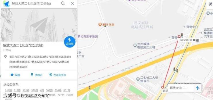 公交方面,解放大道二七纪念馆公交站的线路比较多,截图如下,距离项目约200多米。