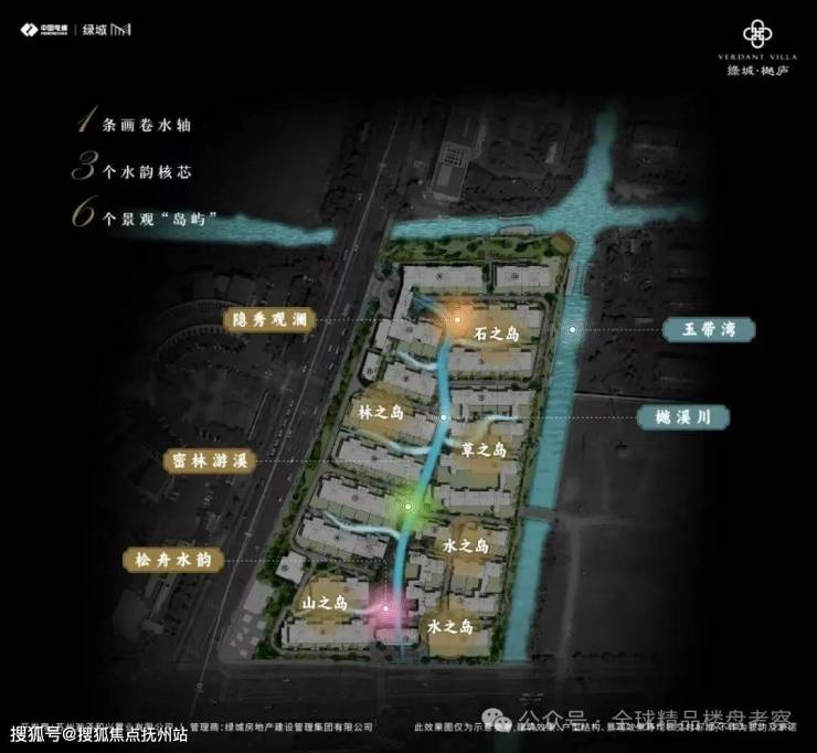 绿城·樾庐以理水造园的设计理念,外部打造约500米长的L形绿带水岸「玉带湾」,内部以一条「樾溪川」水轴贯穿社区景观,内外联动的水境空间,整体滨水总户数达到约75%,构建出独具特色的水境生活空间。
