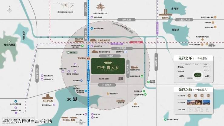 ◎发展之环:中环东接园区产经引擎,西融狮山创新脉络,南承太湖新城生态蓝图,北启高铁枢纽经济,便捷通达苏州多中心,启幕现代化城市发展新篇章。
