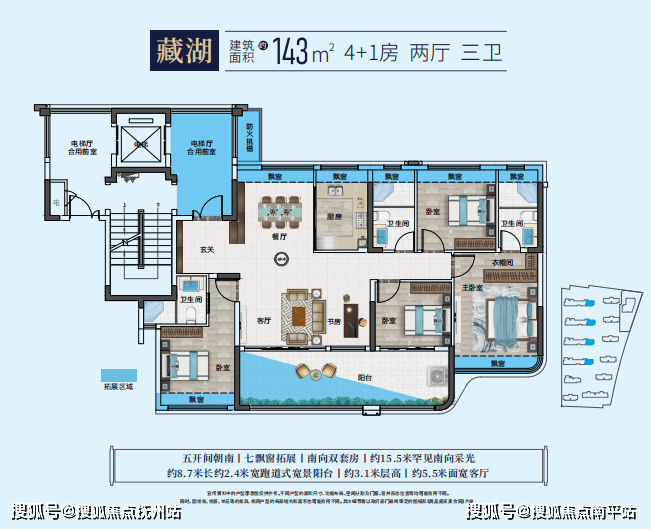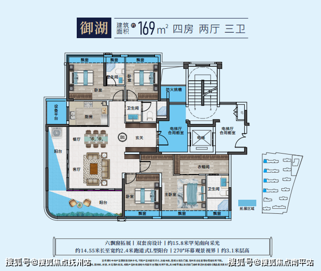 全部都是新规设计,飘窗可拓展,还有防火挑檐可拓展。全部都是独立电梯厅,拥有私密性。