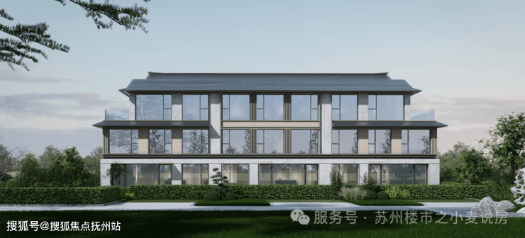 项目的外立面让人惊艳,大面积落地玻璃窗+深灰色屋檐+金属线条勾勒,既有现代感又不失姑苏古城古韵底色。