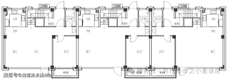 一层平面图,南向面宽接近10米,采光面充足;餐客厅一体化,中西双厨,干湿分离客卫,预留电梯位,南向卧室,可作为老人房。