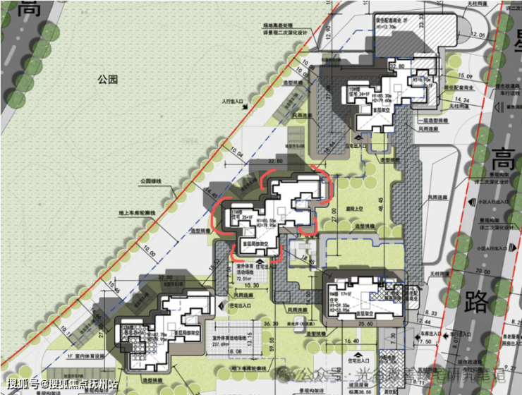 由于地块西侧为市政公园,为了让每家每户都能拥有更多的观景面,万科做了一次大胆的尝试,靠近公园西侧的楼栋没有做成正南正北的板式住宅,而是做成了错位的蝶形建筑。