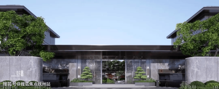 现代中式风格建筑立面,强化了景观的整体性与共生性,讲究线条的简约、质朴,注重建筑的流线性,又包含中式风格的点缀。外部的立面采用石材、铝板、真石漆搭配,顶部还配有灰色坡屋顶设计,结合统一的公建化玻璃窗,营造典雅时尚的建筑形象,项目外立面1-2层全部选用干挂石材,铝板线条,大气美观