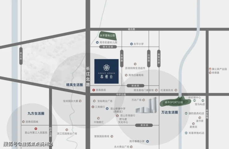 项目南靠中环北线(青阳路、长江路出入口),可快速到达昆山东西南三个方向的城市副中心;距项目1.5公里即是凤凰城商业中心,包含捞王、王品牛排等多个大型餐饮。南向1.8公里即可到达万达广场,满足您一站式的日常购物需求。