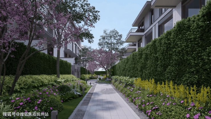 小区内部中心花园与组团景观相结合,为业主打造出“三季有花,四季有景”景观体验