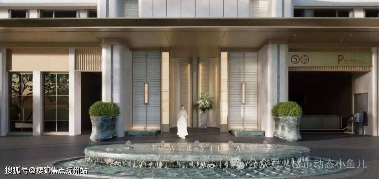 项目入口处对标的是奢牌酒店,以飞鸟展翅的灵动为设计灵感,米白色调贯穿其间,天然石材与香槟金金属板精心拼接的立面,弧形元素对称布局,勾勒出建筑的纯净质感,为归家之路奠定优雅基调。