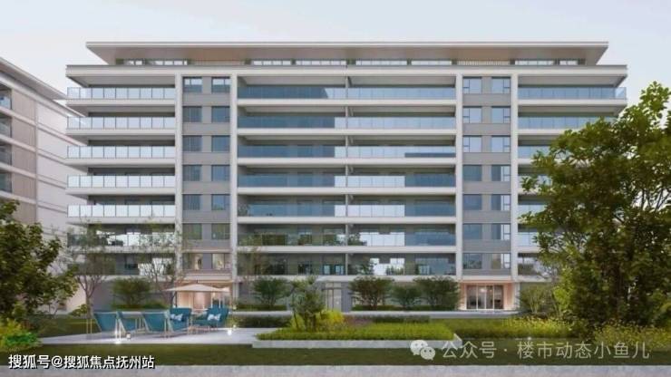 东吴序的建筑立面设计,延续现代简约美学风格。以米白色石材为主基调,阳台区域采用高透玻璃栏板与香槟色金属铝板线条组合,轻盈通透的设计让居住空间与外部环境自然交融。