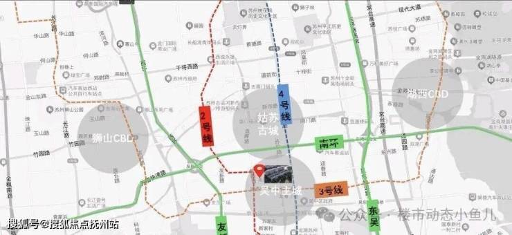 回到地段,东吴序精准落位这片老吴中的核心腹地,苏州双中轴线(宝带西路、东吴北路)交汇处,这里不仅是地理意义上的几何中心,更是苏州“老钱”心中30多年不变的圈层聚集地。
