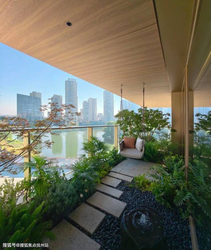 通过智慧灯光(水下/射树氛围灯)、智慧水循环、液位控制、智慧灌溉等智能化设计,让业主不再费神费力也能把空中庭院打理得枝繁叶茂、井井有条。