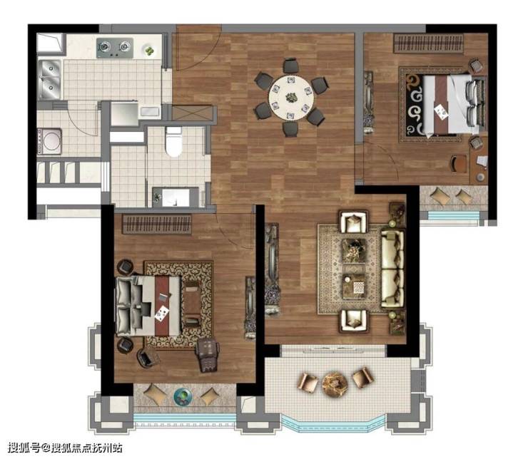 建面约95㎡2房,创新户型,全南设计。每个功能区都朝南,采光没的说!