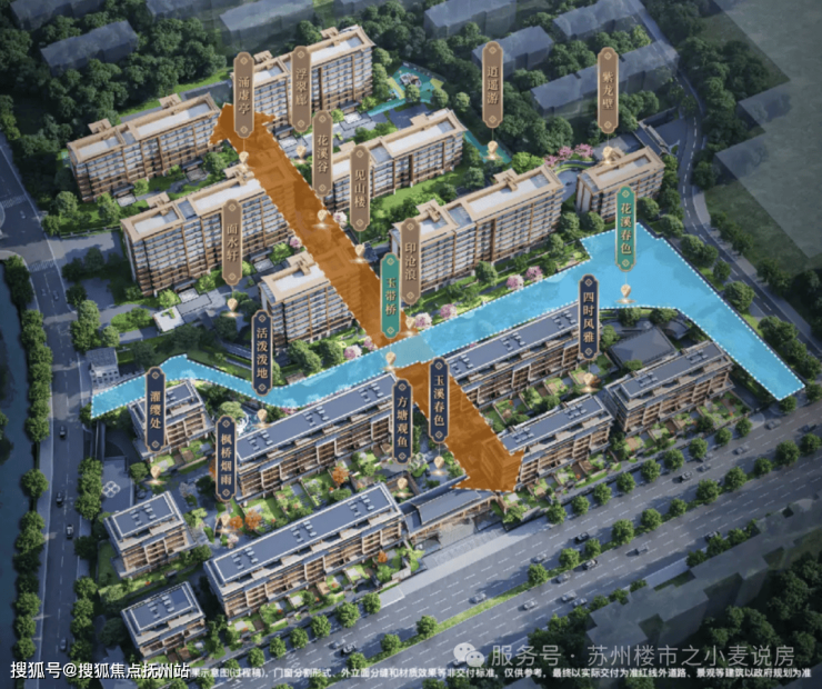 建发·璟园尊重姑苏在地文化,取流经留园、阊门,护佑千年姑苏的源泉之水,师法可园、沧浪亭,营造约1800㎡水域景观与约500米滨河景观带,形成“南北双璧,合而为璟”的布局。