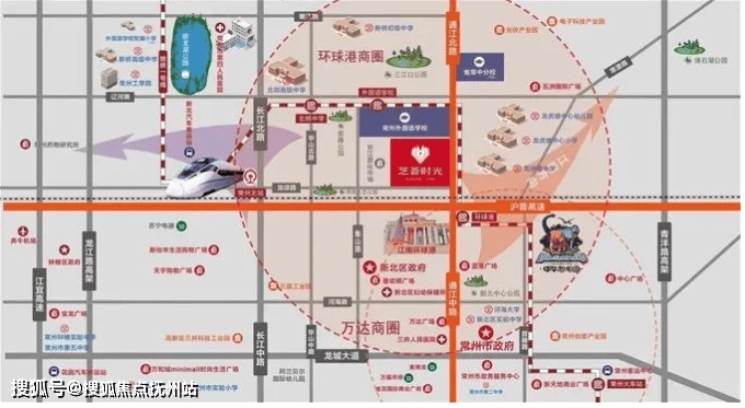 百兴芝荟时光位于新北区通江路与龙须路交汇处,占据高铁新城核心位置。项目周边路网四通八达,毗邻京沪高铁站、沪宁高速入口,距离地铁1号线常州外国语站、环球港站仅约100米。同时,项目南侧便是常州人气最火爆的商业综合体——江南环球港,衣食住行、吃喝玩乐等生活需求一应满足。