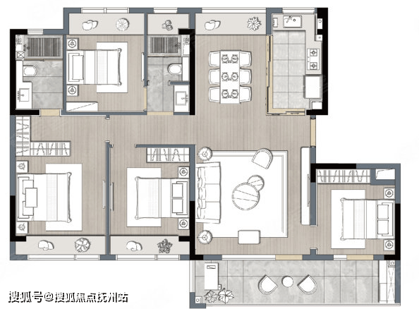 5, 朗诗尚郡首批房源的建筑面积段在133.19-133.39平,其主力户型: