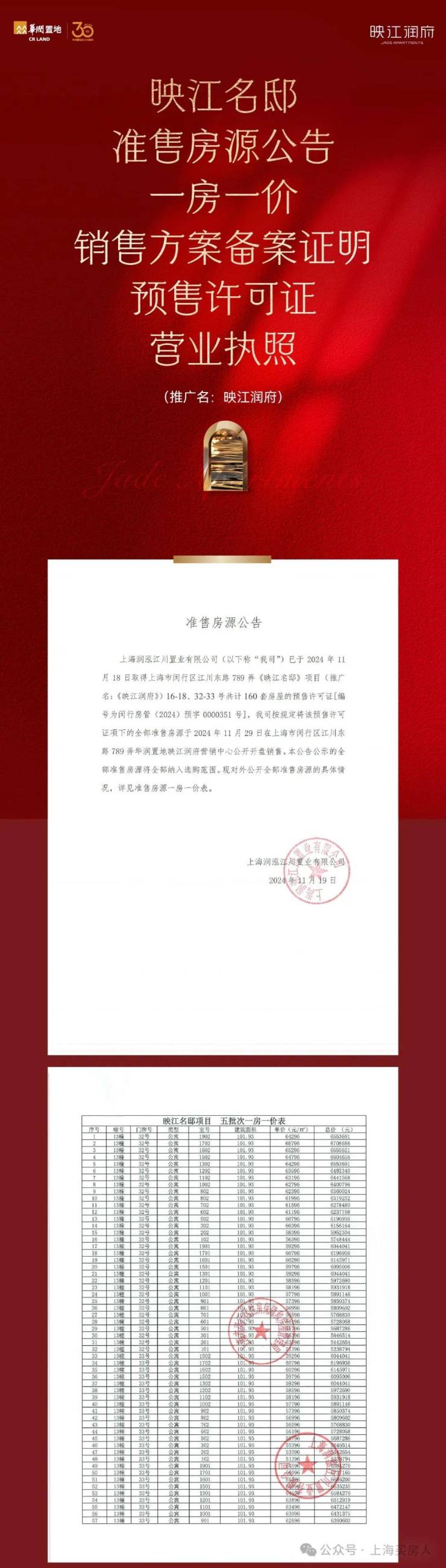 一房一价表发布!闵行500w级品质标杆!「华润·映江润府」售楼处电话:400-765-6772√√【热线】今日认购!将加推建面约88-103㎡精装3房
