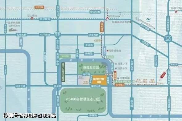 陆家镇被吴淞江以几字行划分为南北两大区域,北区主要发展城市配套、是现在的陆家老城区。而我们项目在吴淞江的南侧,总站地面积约7万平米,建筑面积约16万平米,项目距离S1号线陆家站约300米,离花桥站4站。项目北边是312国道,南边是绿地大道主干道,距离中环南线陆家出入口1.5公里;项目东南侧1.5公里是苏州外国语。周围有昆山第四医院。