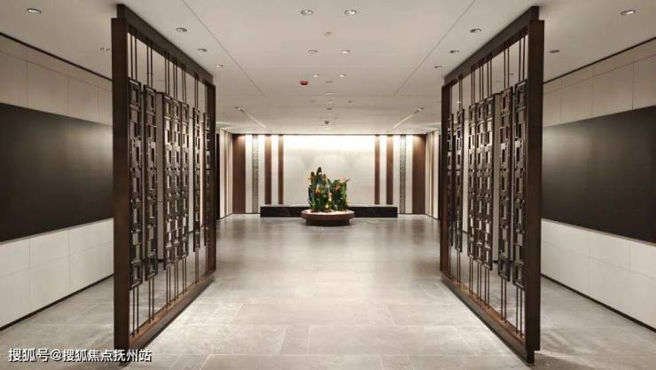 进入地下大堂落客区,内部岩板、木饰面的拼接组合,有着星级酒店般的呈现。