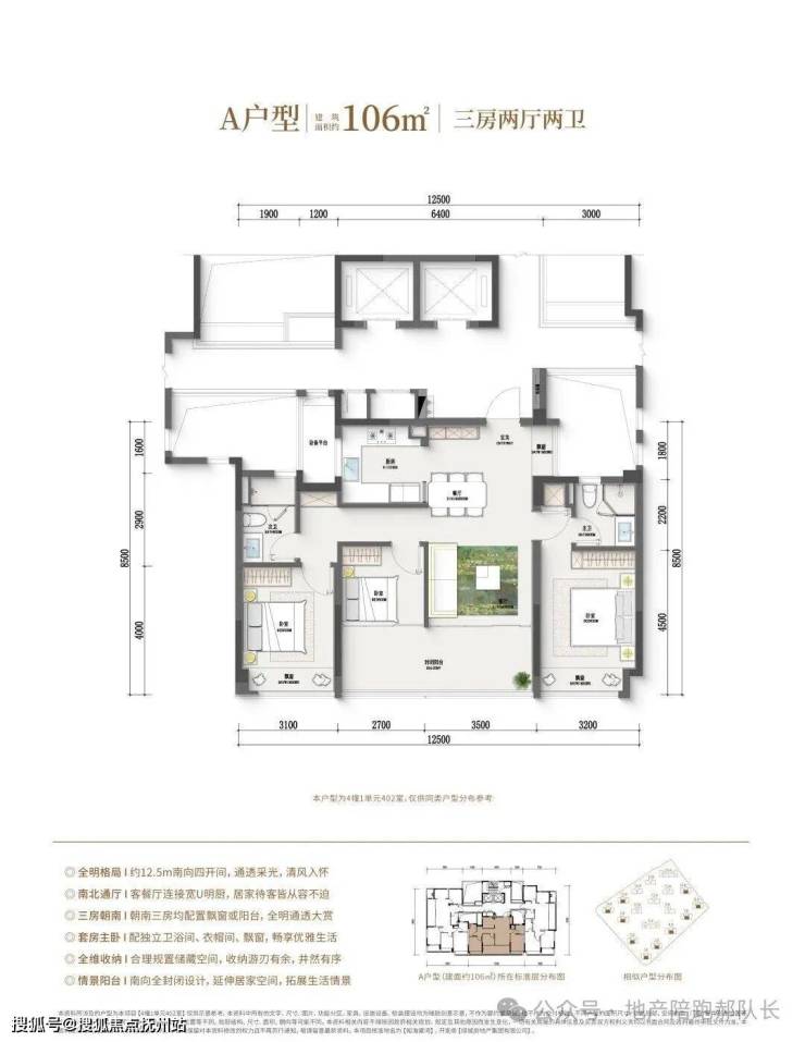 106平方米户型:打造舒适三居室,含两厅及独立双卫,四开间朝南设计,餐客厅无缝衔接,配备全景独立双阳台,实现全明卫生间,彰显生活品质。