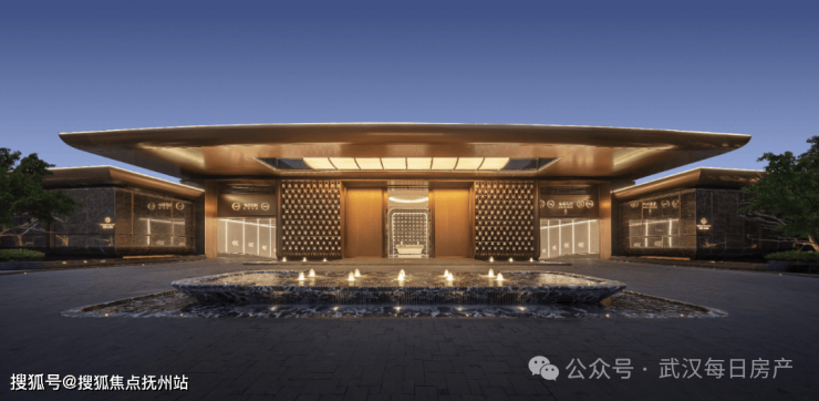 入户三重礼序——拼花步道招财纳福,景墙融黄鹤楼窗棱与钱纹吉意,天幕寓意着光明吉祥,尊贵高雅,将归家行径升华为文化朝圣。