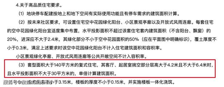 按照温州规划的“高品质住宅”要求,套型面积大于140㎡的复式住宅,可以设置≤30㎡的双层挑空面积。