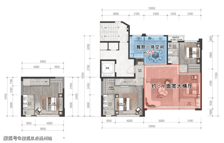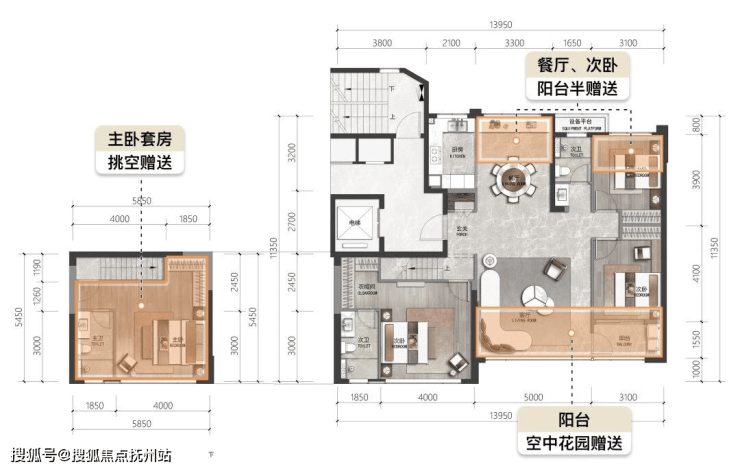 再加上四代宅赠送的空中花园、半赠送的餐厅、次卧、阳台等面积,加起来的面积多出了约50㎡的发挥空间。
