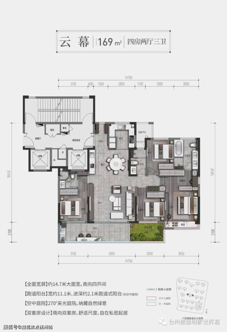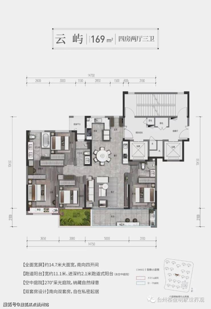 秉承两代同园的建造理念,规划建筑面积约106-330㎡户型空间,方便两代人共同安家于此,实现一家人“一碗汤的距离”;户户规划空中「庭院」,把自然绿意搬进家中,部分户型L型转角飘窗的设计,呈270°宽幕视野。
