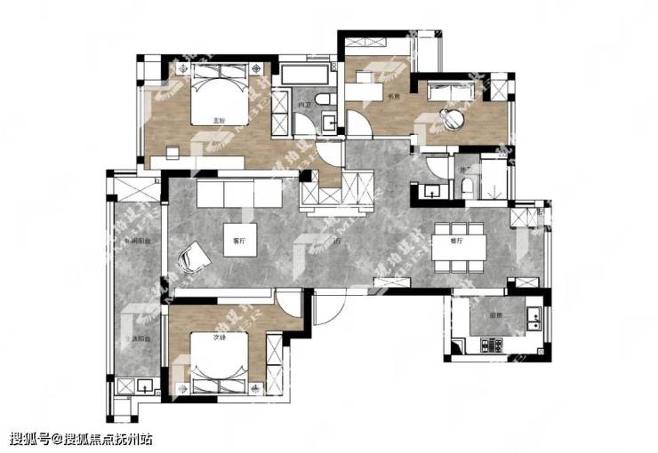 常住人口为夫妻二人加一小孩,需要做2个常用卧室;业主是做建筑结构设计的,对书房空间的要求比较高;风格上面业主喜欢偏稳重的新中式风格,内敛而不失个性。