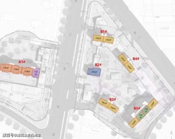 B1#、B3#、B4#都是17层的小高层,2梯2户,户型分别是143-143㎡;B5#是33层,2梯4户连廊结构,户型分布为143-120-120-143㎡;B2# 是11层的小高层,1梯1户,197㎡大户型;A1#是2个单元,每个单元都是2梯2户,户型是178-178-178-132㎡。