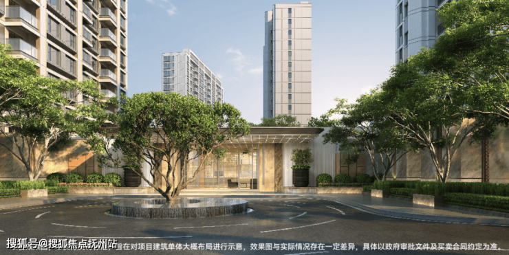 第一重——酒店式环道落客、现代精奢大堂、悬廊叠瀑水岸会客厅,移步异景,漫游归家入户;
