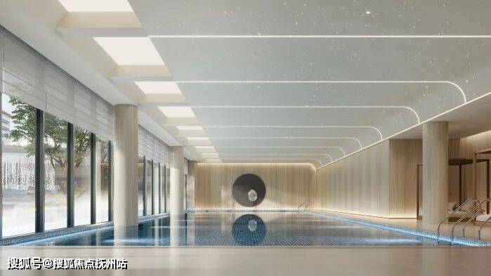 从日常快节奏的城市生活暂离,喊上好友,一起跃入恒温泳池,窗外是景,水下是人,一派和谐相融之景。