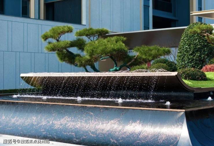 玲珑纤巧的水景顺着超然曲面工艺水台缓缓流动,劲松孤影斜出,空间顿生清雅隐奢之气。