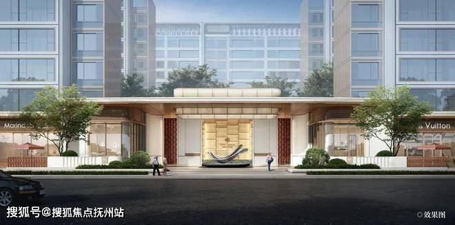社区门厅是小区的颜值担当,整个中欧金茂锦棠的社区大门宽约32米,高约6.6米,融合了中轴对称和层层递进的东方哲学。