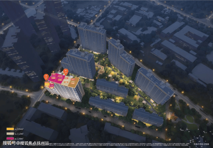 部分楼栋设有架空层,社区设置下沉式庭院、泳池会所,并配建部分社区配套与公共租赁住房。产品上也引入270°转角玻璃、双阳台、N+1灵动空间等设计。
