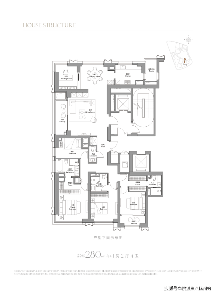 4#西单元(小高层),面积303㎡,总价约4200-5100万。
