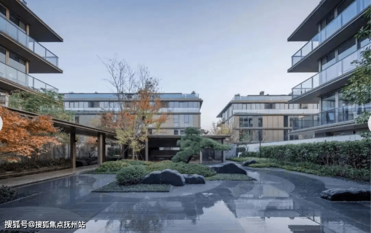 建筑规划:项目容积率仅 1.1,是典型的低密住区 。总共规划 286 户,营造出静谧、舒适的居住氛围,避免了高密度社区的嘈杂与拥挤。建筑类型主打联排别墅,建筑风格融合宋韵美学,以现代建筑语言对传统宋式元素进行创新转译。例如,借鉴宋代建筑的 “轻灵屋檐”,简化戗角飞檐,用利落线条勾勒出独特轮廓;打造 “金镶玉” 立面,以玉润玻璃搭配香槟色金属线条,尽显高贵典雅,呈现现代形制的东方韵律。