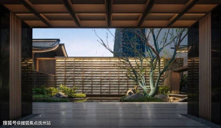 窗外,是绿意盎然的园林,是波光粼粼的湖面,大自然的鬼斧神工与建筑师的匠心独运交织在一起,让建筑与自然实现了无缝对接。中式挑檐搭配绍兴水乡传统的典型色彩漆墙瓦黛,和大量运用的木纹铝板,古朴而典雅,宁静而深远。显而易见,安璞轩在设计中不仅注重建筑的外观美,更注重文化底蕴的传承。立面设计取法绍兴漆墙瓦黛、石窗格栅等传统元素,形成现代派大宅特有的建筑表达。以大尺度东方飘檐,质感铝板打造的木纹盒子结构,丰富立面视觉的同时,成就类独栋的美学墅感。