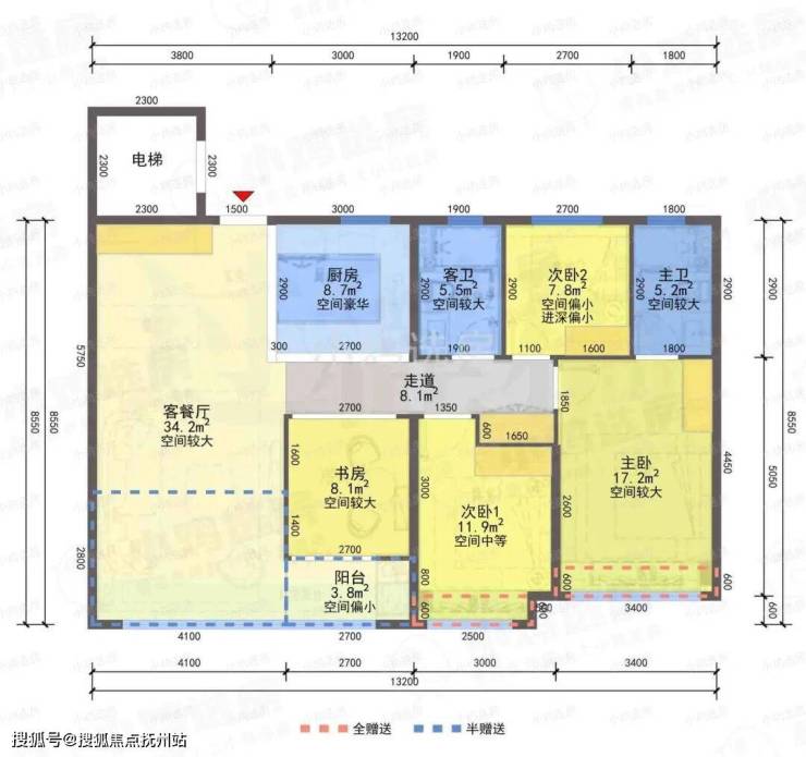 ❸建筑面积约139㎡边厅户型,4房2厅2卫,含赠送得房率约88%。