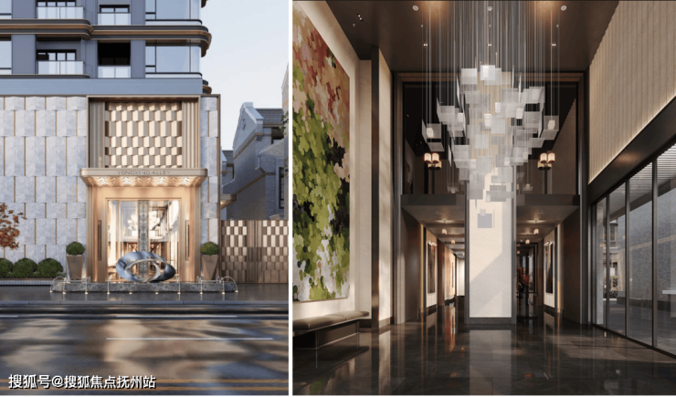 定制酒店式落客区,尊奢入口,参考华尔道夫安曼打造,使用保利物业的24h双管家服务,步步尊崇。